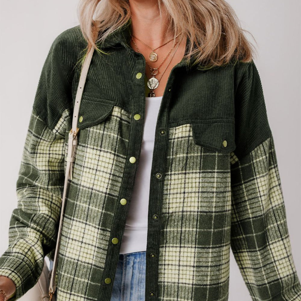 Verleihen Sie Ihrer Garderobe einen Hauch von lässigem Stil mit dieser grünen karierten Damenbluse mit Knopfleiste und Langarm. Mit lockerer Passform und vielseitigen Details ist sie ein Basic, das Komfort mit müheloser Mode verbindet.